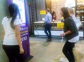 - Estripar uvas: Esta experiencia consiste en que el usuario deberá mover sus pies lo más rápido posible para estripar uvas y así producir la mayor cantidad de vino antes de que se acabe el tiempo. Mientras brinca, podrá ver en la pantalla cómo sube el nivel del vino.