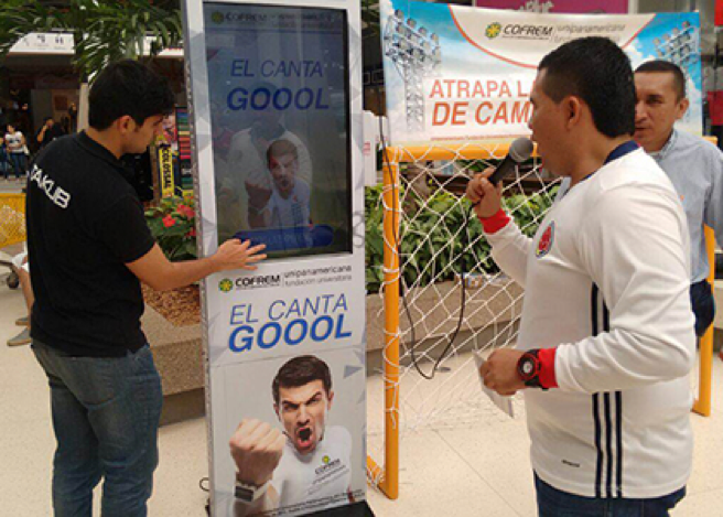 Esta experiencia se puede utilizar en varios momentos. Uno de ellos puede ser invitando a las personas a cantar el primer gol de Colombia o del equipo en cuestión. Otro de los momentos, es narrar cómo será el primer gol y quién lo hará.