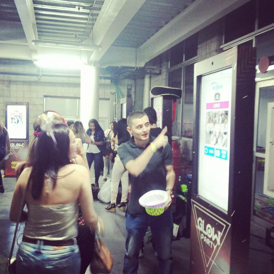 La fotocabina que manejamos en Takub es abierta para que todos los invitados se puedan divertir en grande. Tiene una pantalla de 40 pulgadas para que puedan ver la foto que se tomaron.