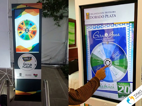 Los usuarios deberán pararse en frente de la pantalla y tocar un botón que la hará girar a velocidades aleatorias. Cuando esta se detenga, dependiendo de la casilla en la que caiga, el jugador podrá ganarse un premio, perder su turno, contestar una pregunta o cualquier alternativa que se quiera.